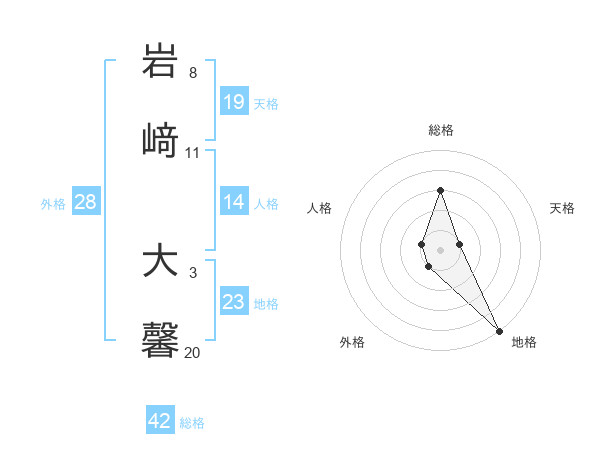 岩﨑 大馨さんを姓名の画数から五運を鑑定