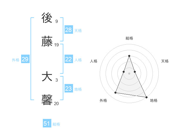 後藤 大馨さんを姓名の画数から五運を鑑定