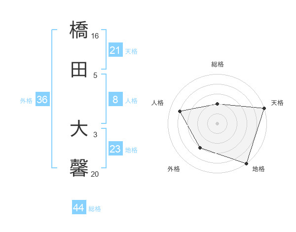 橋田 大馨さんを姓名の画数から五運を鑑定