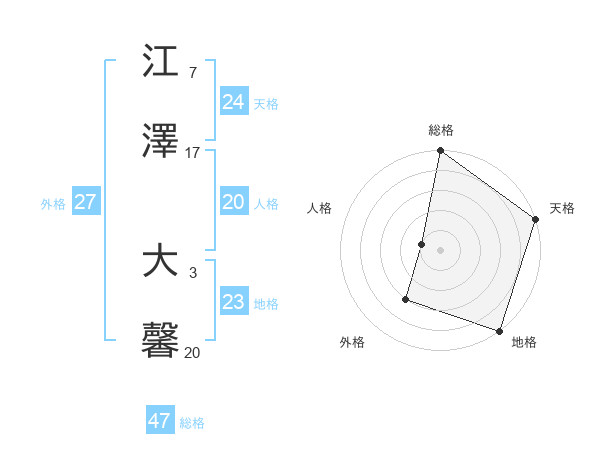 江澤 大馨さんを姓名の画数から五運を鑑定