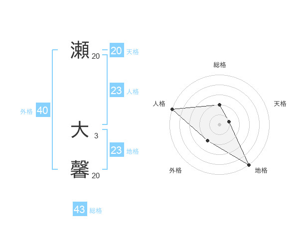 瀬 大馨さんの天格は20画の1点!