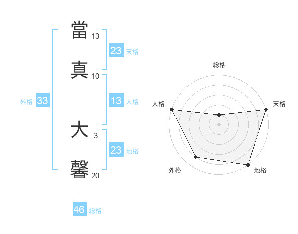 當真 大馨さんの天格は23画の5点!