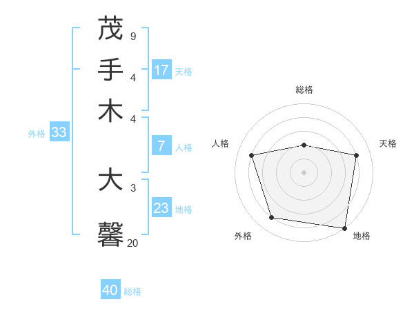茂手木 大馨さんを姓名の画数から五運を鑑定