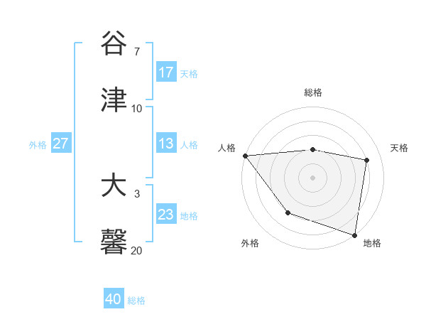谷津 大馨さんを姓名の画数から五運を鑑定