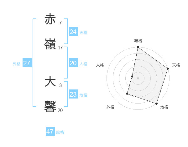 赤嶺 大馨さんを姓名の画数から五運を鑑定