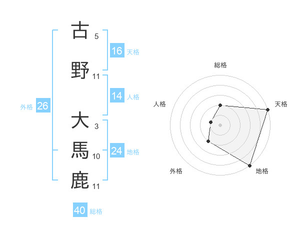 古野 大馬鹿さんの天格は16画の5点