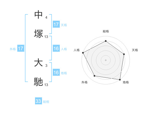 中塚 大馳さんを姓名の画数から五運を鑑定