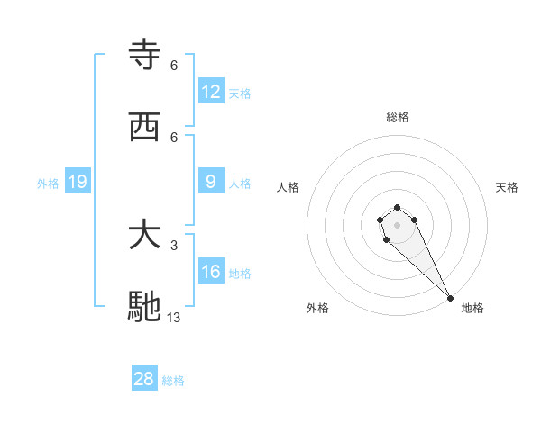 寺西 大馳さんを姓名の画数から五運を鑑定