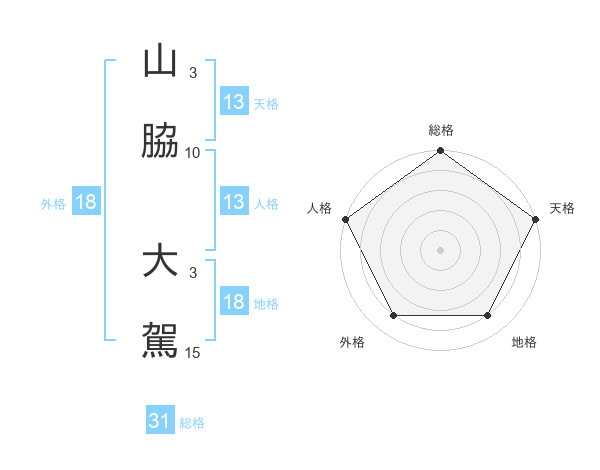 山脇 大駕さんの総格は31画の5点!