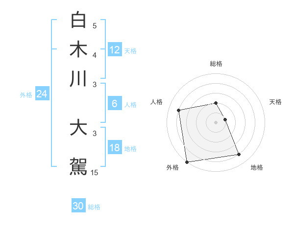 白木川 大駕さんを姓名の画数から五運を鑑定