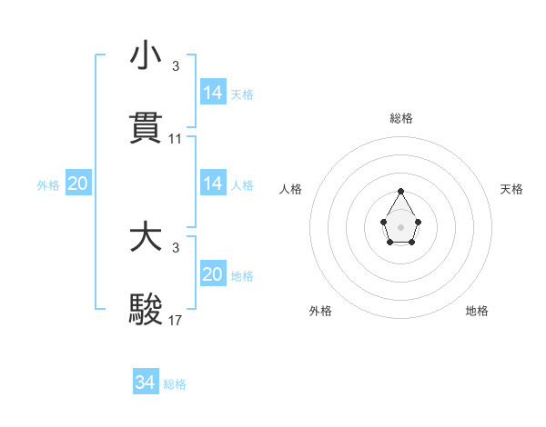 小貫 大駿さんの総格は34画の2点!