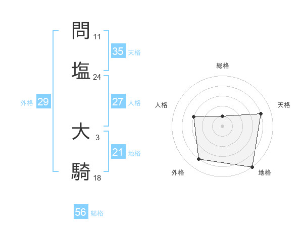 問塩 大騎さんを姓名の画数から五運を鑑定