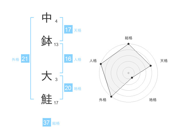 中鉢 大鮭さんの総格は37画の5点!