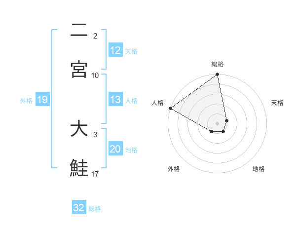 二宮 大鮭さんを姓名の画数から五運を鑑定