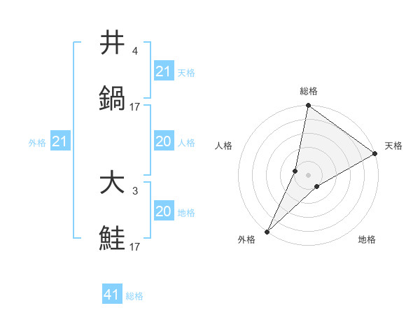 井鍋 大鮭さんを姓名の画数から五運を鑑定