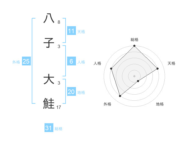 八子 大鮭さんの総格は31画の5点!
