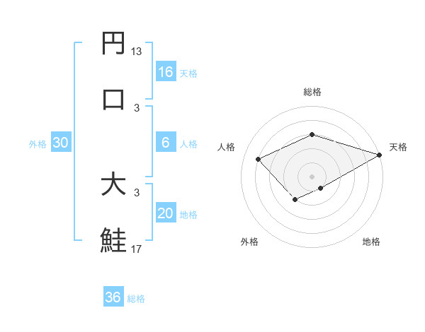 円口 大鮭さんを姓名の画数から五運を鑑定