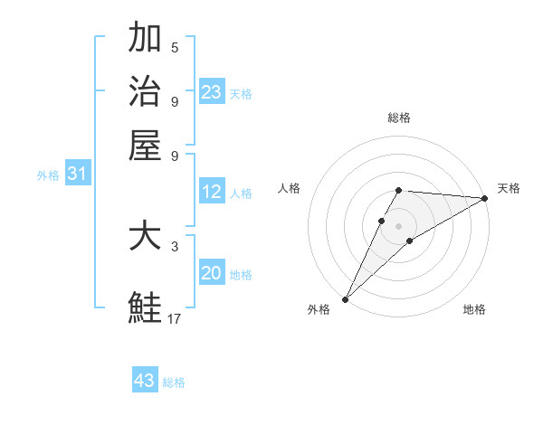 加治屋 大鮭さんを姓名の画数から五運を鑑定