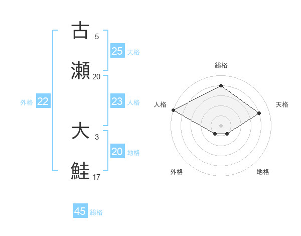 古瀬 大鮭さんを姓名の画数から五運を鑑定