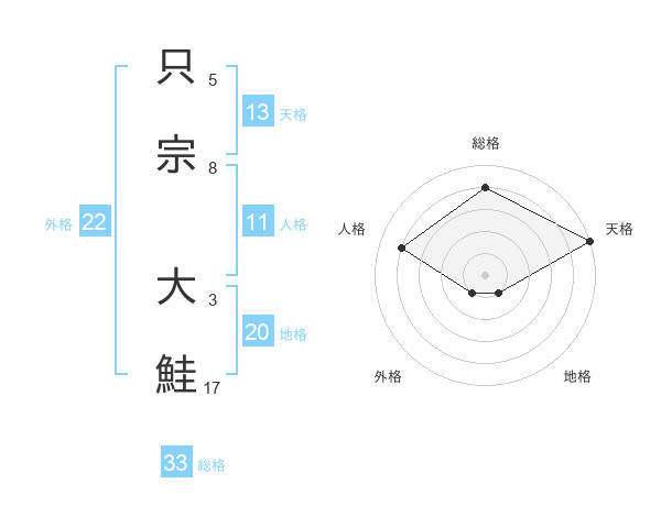 只宗 大鮭さんを姓名の画数から五運を鑑定