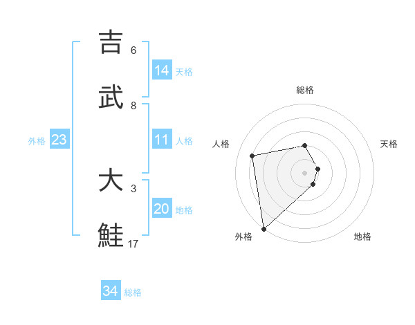 吉武 大鮭さんの総格は34画の2点!