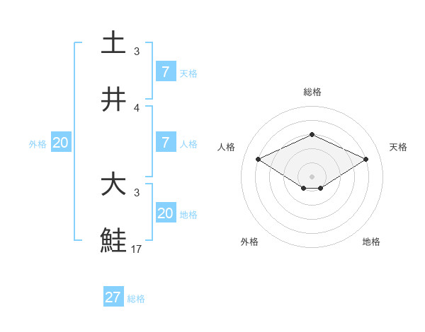 土井 大鮭さんの総格は27画の3点!