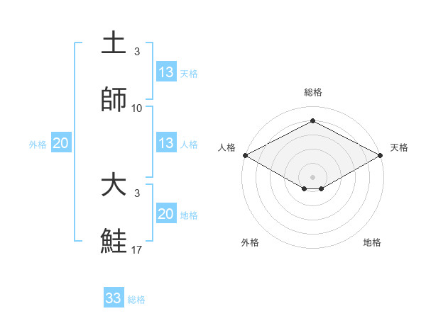 土師 大鮭さんを姓名の画数から五運を鑑定