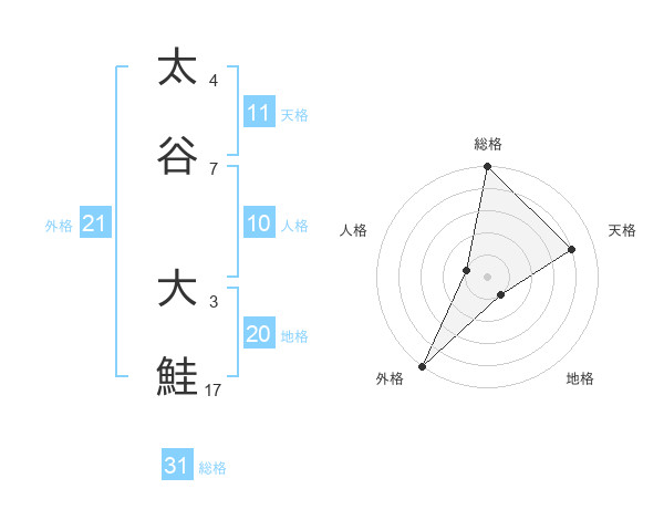 太谷 大鮭さんを姓名の画数から五運を鑑定
