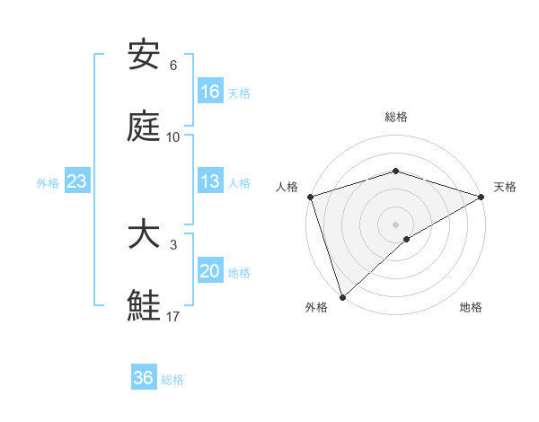 安庭 大鮭さんを姓名の画数から五運を鑑定