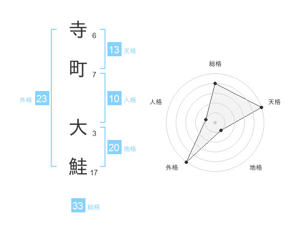 寺町 大鮭さんを姓名の画数から五運を鑑定