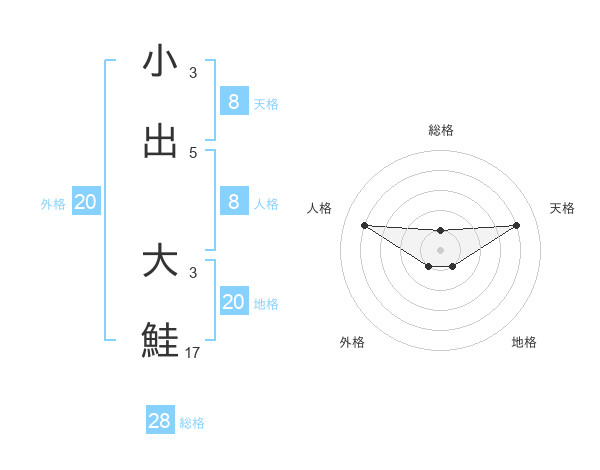 小出 大鮭さんを姓名の画数から五運を鑑定