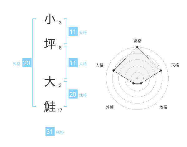 小坪 大鮭さんの総格は31画の5点!