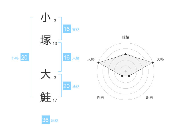 小塚 大鮭さんの総格は36画の3点!