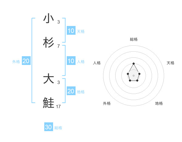 小杉 大鮭さんの総格は30画の2点!