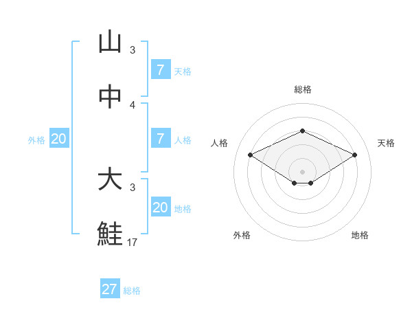 山中 大鮭さんを姓名の画数から五運を鑑定