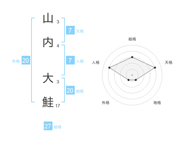 山内 大鮭さんの総格は27画の3点!