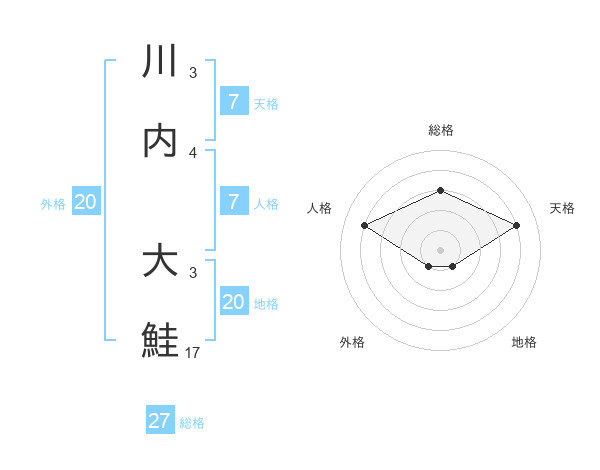 川内 大鮭さんを姓名の画数から五運を鑑定