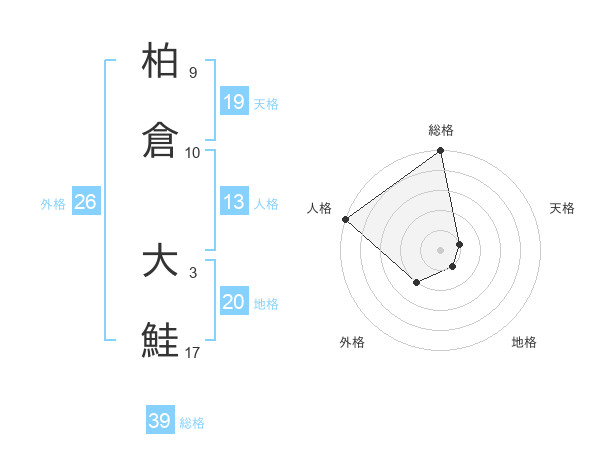 柏倉 大鮭さんを姓名の画数から五運を鑑定
