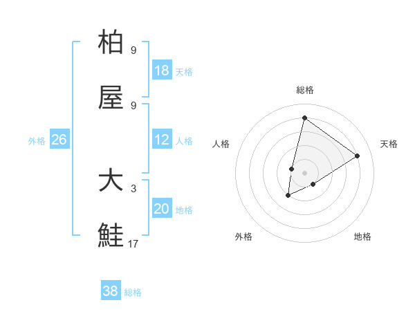 柏屋 大鮭さんの総格は38画の4点!