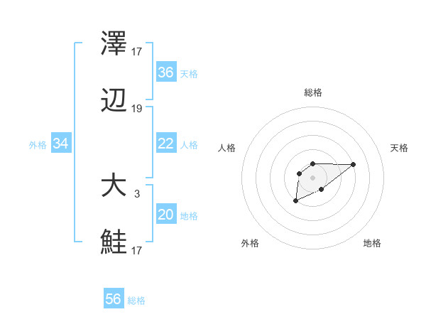 澤辺 大鮭さんを姓名の画数から五運を鑑定
