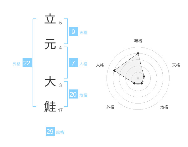 立元 大鮭さんを姓名の画数から五運を鑑定