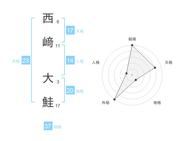 西﨑 大鮭さんの総格は37画の5点!