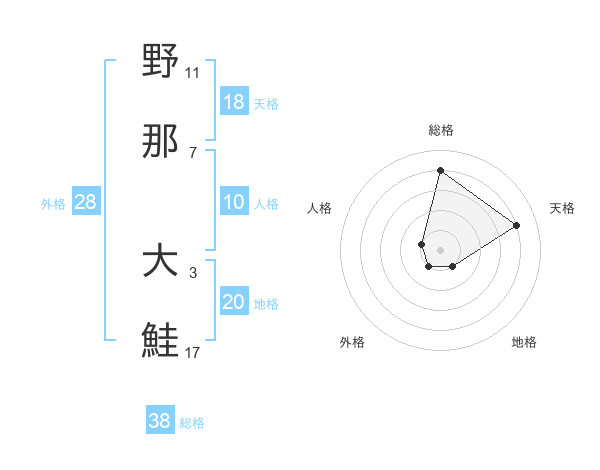 野那 大鮭さんを姓名の画数から五運を鑑定