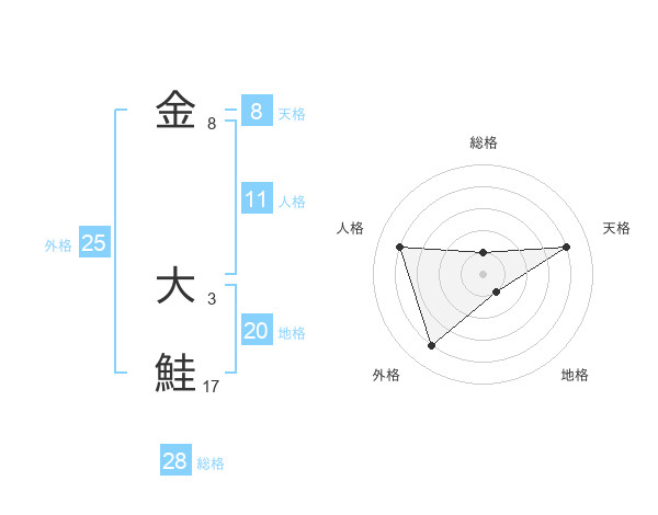金 大鮭さんの総格は28画の1点!