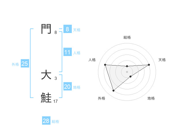門 大鮭さんの総格は28画の1点!