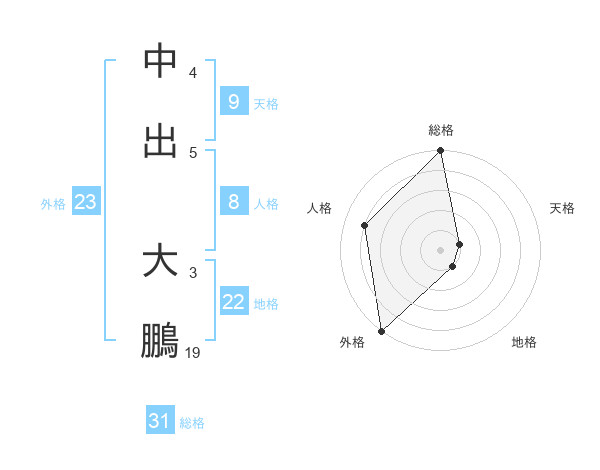 中出 大鵬さんを姓名の画数から五運を鑑定