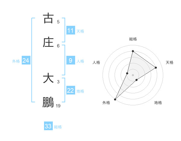 古庄 大鵬さんの総格は33画の4点!