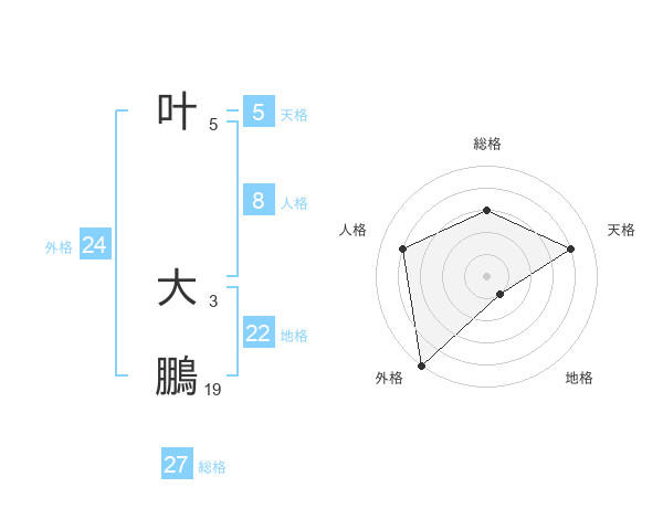 叶 大鵬さんを姓名の画数から五運を鑑定