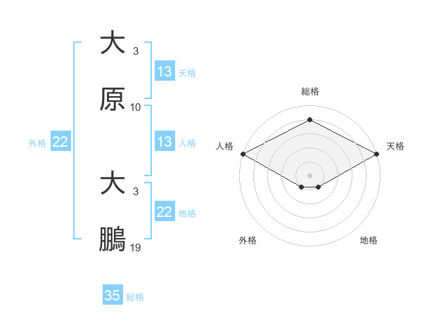大原 大鵬さんを姓名の画数から五運を鑑定