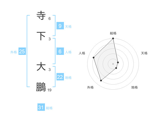 寺下 大鵬さんの総格は31画の5点!